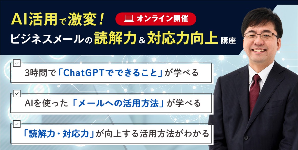 | イベントタイトル | AI活用で激変!ビジネスメールの読解力&対応力向上講座 |